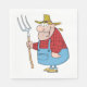 Un fermier en dungarees portant une fourchette. Ce design semble vraiment efficace sur ces serviettes en papier
