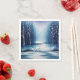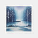 Tableau vintage d'une histoire de neige hivernale avec aurora borealis, un lac, et aigrettes blanches. Les aigrettes représentent la force, la pureté, la patience et la longue vie.