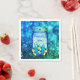 Un pot de mason de lucioles ou d'éclairs contre un arrière - plan étoilé. Un design rustique et élégant. Dans les couleurs bleu, vert et jaune.