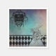 Le lapin d'Alice In Wonderland annonce la fête d'anniversaire avec une corne et un rouleau complexe. Arrière - plan est bleu vert avec motif diamant noir et bleu. Customisez facilement avec le nom et le texte.