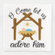Bébé Jésus dans la mangeoire avec le texte "O Venez, Adore-le".