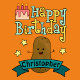 Des serviettes en papier d'anniversaire adorables pour égayer votre fête. Sur un arrière - plan orange, le design commence par le haut avec Joyeux Anniversaire en texte vert et jaune avec un gâteau avec givrage rose et trois bougies éclairées à côté du H en heureux. En dessous du texte est une jolie patate marron avec bras en bâton et un grand sourire. De l'autre côté de la pomme de terre se trouve une bannière bleue avec un modèle pour ajouter votre nom à personnaliser. Enfin, trois étoiles jaunes sont disséminées autour de la pomme de terre.