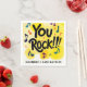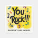 Préparez-vous à faire du rock avec ces serviettes en papier vibrantes! Parfaites pour la fête d'anniversaire de votre adolescent, ces serviettes sont ornées d'un arrière - plan d'aquarelles jaune vif orné de notes musicales colorées qui donnent vie à la fête. Le slogan audacieux "You Rock" est présenté sous forme de typographie noire peinte à la brosse, ajoutant une touche dynamique et pointue à votre table. La typographie moderne améliore le design ludique, tandis que le dos de la serviette est un jaune vif, amplifiant l'atmosphère énergétique. De plus, le texte du bas est personnalisable, ce qui vous permet de le personnaliser pour une fête riche en énergie et amusante !