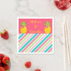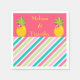 Ces belles serviettes sont équipées de deux ananas en haut sur un arrière - plan rose. Entre les ananas est le nom du couple écrit en jaune. Sous les ananas se trouve un motif rayé en diagonale rose, vert et bleu. Absolument époustouflant. Commandez dès aujourd'hui !