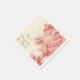 Des serviettes spéciales en papier avec initiales de mariée et de mariée, date mariage et bel arbre rustique vieux peint avec des aquarelles rousses.