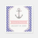 Bleu marine, rayures blanches et ancre mariage nautique papier serviette. Un élégant design motif rayé à rayures bleu marine, rayures diagonales blanches, une ancre avec un coeur et une corde d'amour bleu rose et votre texte dans un cadre avec une bannière. Moderne mais avec un look vintage dans un sens. Vous pouvez modifier la couleur arrière - plan et la couleur du texte en choisissant parmi plus de 200 couleurs à partir du graphique en couleurs Zazzle. Ce design élégant est un modèle entièrement personnalisable et fait partie d'un ensemble mariage parfait pour un mariage d'été sur la plage, une douche nuptiale, une réception, un fiançailles ou une fête d'anniversaire.
