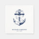 Serviettes mariages bleues et blanches. Idéal pour un mariage de la Marine (militaire) ou d'une maison de lac. Le design comporte une ancre enveloppée dans une bannière avec le texte "Ancré dans l'amour". Personnalisez-le avec vos détails mariages.