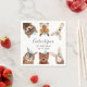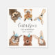 Une serviette en papier sur le thème des boisés amusante et mignonne, illustrant des animaux de la forêt, y compris un raton laveur, un renard, un cerf, un hibou, un ours et un lapin. Parfait pour la fête d'un garçon.