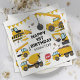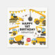 Des serviettes de fête d'anniversaire de construction pour enfants avec un simple arrière - plan blanc, avec de mignons illustrations de dessins animés de brume, des panneaux d'arrêt, un camion à benne, une crevette, un camion de ciment, une grue à billes, des éclats de saleté, et un heureux modèle d'anniversaire facile à personnaliser.