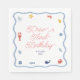Faites la fête d'anniversaire de votre petit-fils à thème côtier avec de la vaisselle assortie. Personnalisez avec votre propre nom et les détails de votre fête. Consultez notre collection correspondante pour la coordination des articles! Cette esthétique marine ou côtière vintage de la côte Est est propre est parfaite pour une fête d'anniversaire de garçon ou adaptable pour les adultes, graduation, retraite, et plus encore!