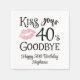 Amusant Anniversaire Embrasse Votre Décennie Adieu Papier Personnalisé Serviettes. Célébrez un anniversaire qui débute une nouvelle décennie avec ces serviettes de fête amusantes avec un design de typographie moderne d'âge modifiable pour le dicton KISS YOUR DECENNIE GOODBYE (l'exemple montre 40) et personnalisé avec votre texte personnalisé. CHANGEMENTS : Le style de police de texte personnalisé, la couleur, la taille et le placement ainsi que les graphiques et les couleurs arrière - plans peuvent être modifiés pour être coordonnés avec les couleurs de votre thème de fête. OPTIONS NAPKIN : L'échantillon est présenté dans la taille du Cocktail de 4,75 x 4,75 pouces sur le blanc—d'autres tailles et couleurs papier serviette sont disponibles sur la page de commande. ASSISTANCE : Pour obtenir de l'aide sur la modification ou la personnalisation de la conception, le changement de couleur, le redimensionnement, le transfert de la conception à un autre produit ou pour coordonner des éléments, contactez le concepteur AVANT DE COMMANDER via Zazzle Conversation ou makeitaboutyoustore@gmail.com.