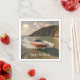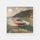 Ces serviettes en papier de fête d'anniversaire sont équipées d'un bateau rapide qui longe une plage.