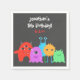 Une adorable invitation à la fête d'anniversaire effrayante pour les enfants avec un thème monstre et un arrière - plan à pois multicolores polka, avec de mignons monstres.
