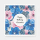 Serviette En Papier Anniversaire Floral Bleu Rose Élégant