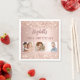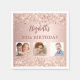 Une serviette pour une fête d'anniversaire girly et glamour de 50ème (ou tout âge). Un arrière - plan rose à dégradé d'or décoré de confettis. Le texte : Le nom est écrit en or rose foncé avec un grand script de style à la main moderne. Personnalisez et ajoutez le nom, âge 50 et 3 de vos propres photos de la fille d'anniversaire, sa famille, des amis ou des animaux de compagnie.
