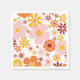 Serviettes d'anniversaire super d'inspiration rétro avec fleurs de style années 70 et couleurs boho.