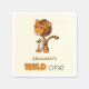 Serviettes d'anniversaire adorables avec un petit tigre pour votre fête d'anniversaire à thème jungle. Illustré et dessiné par Patricia Alvarez.
