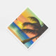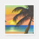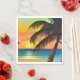 Serviettes de fête d'anniversaire. couleurs vintages silhouette de palmier et vagues de l'océan sur une plage de sable ai généré des oeuvres d'art.