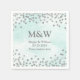Serviettes de mariage Monogramme en motif bleu clair turquoise avec confettis argent glamour. Veuillez noter que l'argent est un effet photographique seulement.