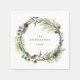 Ajoutez un accent festif à votre paysage de table avec ces serviettes personnalisables en papier de Noël. Elles comprennent des aiguilles de pin aquarelle, des feuilles d'eucalyptus et des pinecones. Personnalisez ces serviettes en papier de vacances verdoyantes en ajoutant vos détails. Ces serviettes en papier de Noël sont disponibles sur d'autres cartons. Des éléments correspondants sont disponibles.