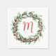 Couronne de Noël avec monogramme Couronne d'aquarelle peinte à la main sur une serviette. Donnez à votre fête de Noël une touche personnelle supplémentaire