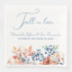 Ces serviettes personnalisées présentent un thème floral automnal romantique dans des tons de bleu poussiéreux, beige et cuivre. Des fleurs de style aquarelle, des baies et du feuillage d'automne sont placés le long de la partie inférieure pour ressembler à un jardin sauvage. De petites baies bleues sont nichées avec des fleurs couleur cuivre et des feuilles couleur rouille. La phrase "Tomber amoureux" est imprimée en haut dans une police de caractères élégante, suivie des noms des mariés et d'une date de mariage exemples.
