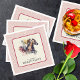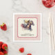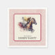 Les serviettes élégantes de la fête de derby comprennent un cheval de course à l'aquarelle et du jockey sur ivoire avec une bordure motif rouge. CORRESPONDANCE d'objets dans notre collection.