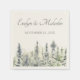Ces serviettes personnalisées sont parfaites pour votre mariage dans un cadre forestier ou montagnard. Elles ont un style simple mais élégant avec un accent illustrant une forêt de pins de grande taille ou à feuillage persistant dans les tons vert sauge, gris et vert pâle. L'aquarelle douce a une qualité calme et paisible, qui vous rappellera que le brouillard se lève sur un vitrage boisé. Le lettrage classique et élégant dans un vert à la sauge foncée coordonné indique les noms de la mariée et du marié et la date du mariage.