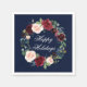 Serviette En Papier Aquarelle Floral Wreath Joyeux Vacances Bleu