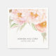 Une serviette en papier très romantique avec des pivoines roses luxuriantes et une végétation luxuriante dans de subtiles teintes d'aquarelle. Modifiez le texte avec vos informations.