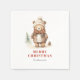 Ces serviettes en papier rustiques et douillettes de fête de vacances présentent une aquarelle illustrant un ours brun mignon vêtu de vêtements d'hiver. Les mots "MERRY CHRISTMAS" apparaissent en lettres rouges serif qui se coordonnent avec l'art. Ajoutez le nom de votre famille en italique gris-fusain.