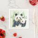 Des serviettes en papier avec une jolie illustration aquarelle représentant une mère noire et blanche et un bébé panda ours se tenant ensemble. Maman tient son petit au milieu de tiges de bambou vertes.