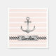 Serviettes en papier tendance avec ancrage gris aquarelle sur un arrière - plan rayé rose clair et blanc. Vous pouvez également personnaliser la conception avec du texte personnalisé sous l'ancrage.