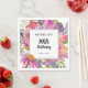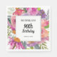 serviettes en papier de la fête du 90e anniversaire de la femme fleur sauvage couleur violet et rose, personnalisées avec le nom de l'invitée d'honneur, son âge et sa date de fête. Le texte est entièrement personnalisable, de sorte que cette carte peut être conçue pour n'importe quel âge. Contactez-nous pour obtenir de l'aide sur la personnalisation ou la mise en correspondance de produits.