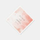 Ce design de serviette de mariage présente un fond doux et aquarellé dans des teintes rose pâle et blanc, créant un effet éthéré et vaporeux. La mise en page est centrée avec une typographie élégante, combinant des polices sans-serif épurées pour les noms et un script cursif délicat pour "et", renforçant son charme romantique. Le style minimaliste met en avant la simplicité et la clarté, ce qui le rend parfait pour les célébrations intimes. Son ambiance sereine et sa palette de couleurs douces évoquent une atmosphère intemporelle et rêveuse, idéale pour les occasions spéciales comme les mariages.