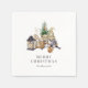 Ces serviettes en papier rustiques et douillettes de fête de vacances présentent une aquarelle illustrant un mignon gnome féminin assis à côté d'un arbre de Noël miniature, d'un panier de billes de bouleau et de quelques bougies. Les mots "MERRY CHRISTMAS" apparaissent dans des lettres serif grises qui se coordonnent avec l'art. Ajoutez le nom de votre famille en italique gris charbon.