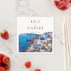 Ces élégantes serviettes en papier mariage Santorini Greece peuvent être personnalisées avec vos informations dans la typographie moderne. Conçu par Thisisnotme©