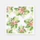 Chic Aquarelle Tropicale Floral Napkin. Il présente un agencement tropical de feuilles de bananes, hibiscus, feuilles de palmier, noix de coco, ananas et autres éléments tropicaux.