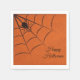 Serviettes en papier orange avec araignée noire et toile.