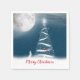 Étoile blanche sapin de Noël sur le bleu avec une pleine lune brillante, lapin mignon et cardinal rouge. Superposition de flocon de neige. Le texte peut être modifié ou supprimé.