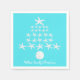 Des serviettes de Noël bleu Aqua, tropicales. L'étoile de mer blanche fait une forme d'arbre sur des serviettes en papier bleu vif avec du texte blanc personnalisé en bas pour le nom de famille, ou tout libellé.
