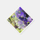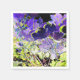Un design artistique assez abstrait de feuilles d'arbres en violet et vert.