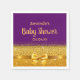 Une serviette élégante et glamour pour baby shower neutre pour les hommes et les femmes. Arrière - plan flamboyant violet, violet et doré avec un faux ruban d'or et arc. Modèle pour le nom de la mère à être, la date du baby shower et le texte : Baby shower. Lettres d'or.
