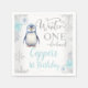 Serviette En Papier Argent Bleu Pingouin Hiver Onederland Anniversaire