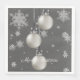 Ajoutez une touche festive à vos rassemblements et fêtes de Noël en cette période de fêtes avec une serviette de fête de Noël Argent. Le design Napkin comprend un trio d'ornements de Noël suspendus avec des flocons de neige en chute et un arrière - plan gris foncé. Autres cadeaux et objets de vacances disponibles avec ce design aussi.