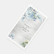 Une serviette mariage peinte à l'aquarelle moderne et élégante, avec un bouquet de pivoines bleues poussiéreuses, s'épanouit contre un arrière - plan d'aquarelle argentée avec une police serif très fine et vivante.