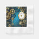 Arrière - plan turquoise, texturé, steampunk avec des engrenages en laiton et or, une clé en argent et l'horloge. Style Steampunk.