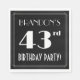 Ce design élégant des années 1920-1930 inspiré quarante-troisième anniversaire de conception de serviette de table de fête comprend un nom personnalisable, un style art déco complexe inspiré numéro "43ème", le message "BIRTHDAY PARTY!", et une frontière multi-lignes. L'arrière - plan est coloré en noir par défaut, mais il peut être customisé à une couleur différente, si désiré. Des serviettes en papier comme celles-ci pourraient être utilisées à une fête pour quelqu'un qui célèbre son quarante-troisième anniversaire. [~Z0000612]