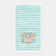 A watercolor mermaid from my Bonnet Babes collection floats on a sea of aqua stripes, just waiting to dazzle your guests. For you mermaid fans, "Shelly's" orange octopus hair, friendly sea turtle, shells galore, and a fishy green tail make her a delightful addition as a hand towel for a coastal-themed bathroom or a lunch or dinner napkin.