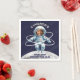 Blast off into a new year with this first trip around the sun birthday party napkin for kids. This design is lets you place a photo of your child's face inside the astronaut helmet while highlighting their journey through time and space. Perfect for children of all ages, it brings a playful cosmic twist to your celebration.